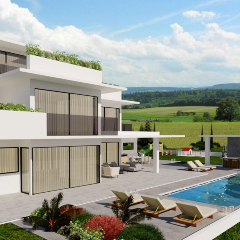 Experience the epitome of modern living in this exceptional 3-story villa, nestled in the beauty of Larnaca, this property boasts a large pool with sun loungers, an outdoor bar area, and a relaxation zone with a barbecue, perfect for endless fun and leisure. For your furry companions, a dog villa with a mini pool awaits. With four spacious bedrooms and a rooftop garden offering breathtaking sunset views, this villa is a royal pleasure and an ideal retreat, all just a short drive from the sandy beach and city center.