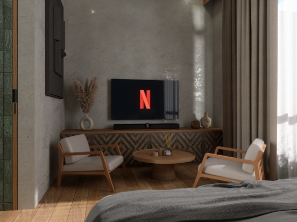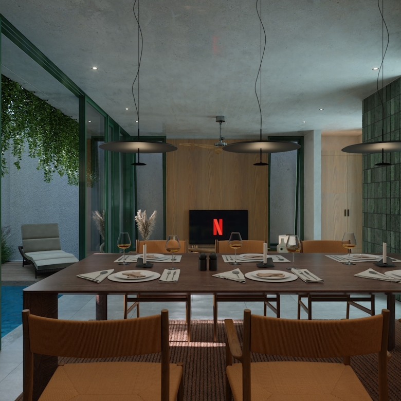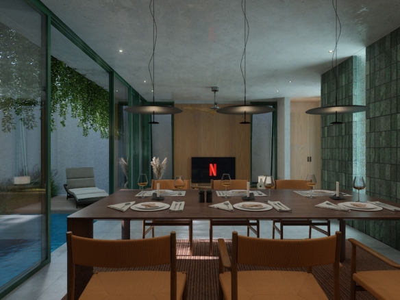 Crafted with exquisite attention to detail, the villa combines warm textures, natural materials, and a sleek contemporary aesthetic. Expansive glass doors open to the pool and terrace, allowing natural light and gentle breezes to fill the space—perfect for relaxed tropical living.