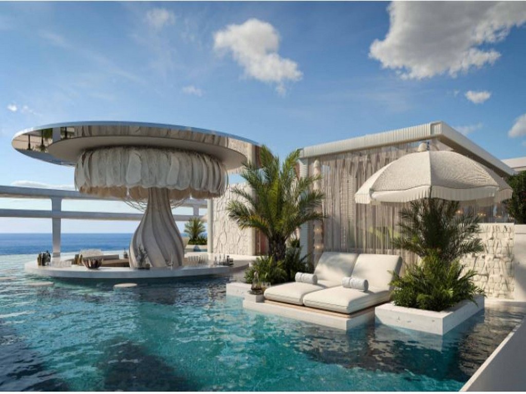 Rooftop (Cloud 9): Private and public sky cabanas, floating sun loungers, infinity pool, infinity deck, main pool bar, Roman bath, spa, sauna, steam rooms, and indoor/outdoor yoga studios.