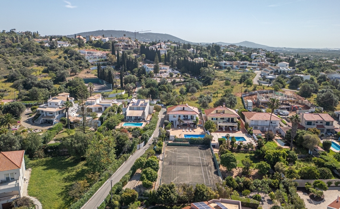 The lower level of this villa could easily be converted into a separate apartment. Huge opportunity to transform this double-story villa with coastal views into your dream modernized retreat! Located in the desirable Vale Formoso area, close to Almancil and just a short 15-minute drive to the luxurious resorts of Vale do Lobo and Quinta do Lago, this property sits on a generous 1.433 m2 plot. With amenities such as a tennis court and a low-maintenance garden, the potential of this property as a building project is immense.
