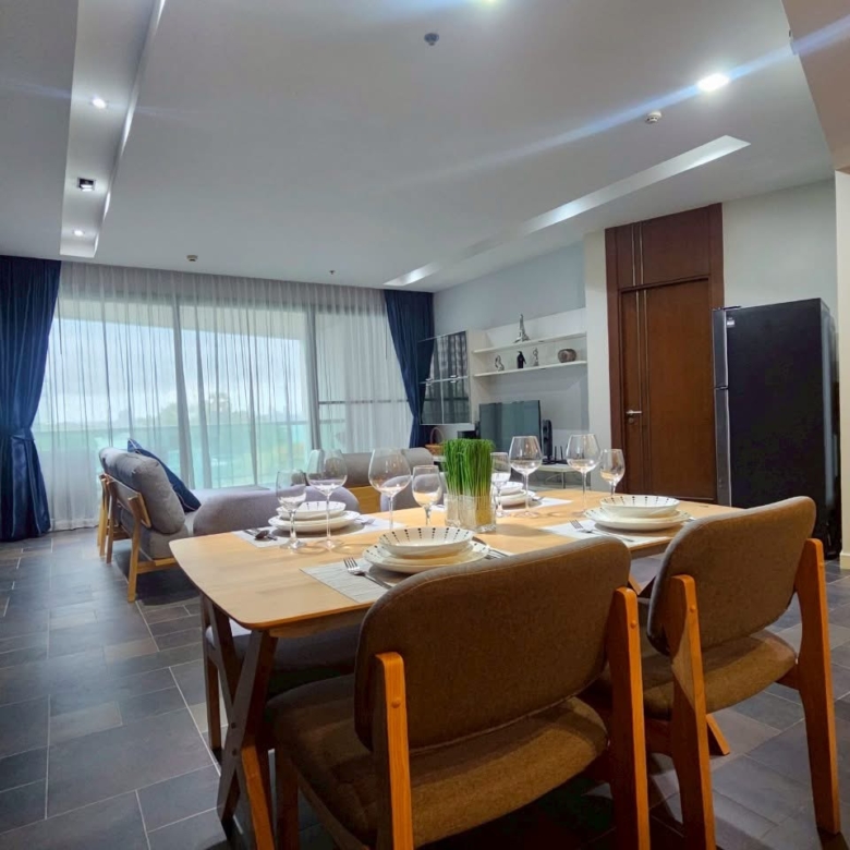Ananya Beachfront CondominiumOne of Pattaya’s most prestigious low-rise beachfront developments, located in the peaceful Naklua area. Completed in 2009, This spacious 1-bedroom beachfront residence offers approximately 100 sqm of refined living space with panoramic sea views from the living room and balcony. The open-plan layout blends the kitchen, dining, and living area seamlessly, maximizing both natural light and airflow.
