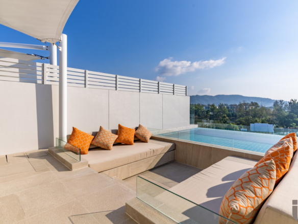This stunning two-bedroom modern penthouse embodies comfort and elegance in the vibrant Bangtao area of Phuket. Featuring a spacious master bedroom with a double bed and a second bedroom with two single beds, this residence offers stunning lagoon views and is perfect for families or groups. With two bathrooms, convenience and privacy are assured. The open-plan layout seamlessly combines the kitchen, living, and dining areas, creating a perfect space for both relaxation and entertaining. Step onto the expansive balcony to enjoy breathtaking panoramic views of the lake and the Andaman Sea, making every moment unforgettable. Designed with a blend of modern aesthetics and functionality, these residences provide exceptional comfort and foster a vibrant community atmosphere. Each unit reflects meticulous attention to detail, delivering a harmonious blend of luxury and practicality. Outdoor enthusiasts will appreciate the private rooftop pool, complete with a barbecue area—a perfect spot to soak in stunning sunsets and sea views from an exclusive vantage point. Located along the picturesque Bang Tao Bay on Phuket’s west coast, the development comprises three low-rise buildings discreetly positioned by a serene lagoon, with the Andaman Sea stretching beyond. This thoughtfully designed community offers unparalleled style, comfort, and authenticity. The Residences are managed with excellence, providing a comprehensive range of services and amenities that cater to your every need. Discover the ideal balance of luxury, privacy, and community living in this exceptional penthouse.