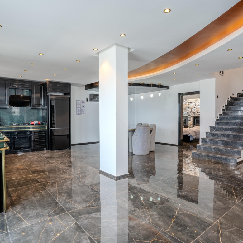 Living Room & Kitchen:An open-plan layout connects the living area with the kitchen, creating a sociable environment for everyday life.