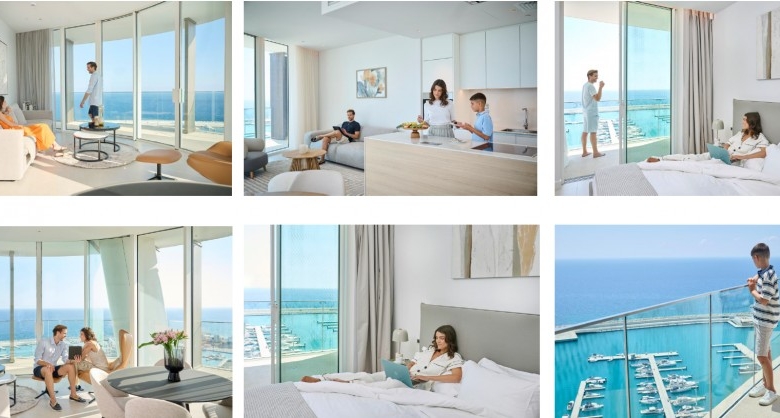 Experience luxury coastal living in this stunning two-bedroom apartment, designed to maximize natural light and breathtaking sea views. With 123 sqm of elegant interior space and a 34 sqm covered veranda, this residence offers a seamless blend of indoor-outdoor living. The open-plan layout enhances the sense of space, featuring high-end finishes, sleek modern aesthetics, and premium materials throughout. The master suite includes an en-suite bathroom, while the second bedroom provides comfort and privacy. With a total of 157 sqm of living space plus 47 sqm of additional areas, this exclusive home is perfect for those seeking sophistication, tranquility, and an unparalleled connection to the sea.