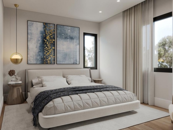 This is a small residential block of Apartments which is in a desirable area of Derynia, just few hundred meters off the Paralimni Hospital, overlooking the old Famagusta City. Some of its features are the luxury living feel and look plus the minimalistic design along with its premium location. Concrete and glass are the major exterior features which give a modern unique look, and the apartments inside are luxurious and contemporary.  The project includes 6 two- and three-bedroom apartments with their own verandas and parking places.   The two penthouse apartments also include a massive roof garden with stunning views. It is designed to meet the needs of families and couples who want to be just a few minutes’ drive away from the buzzing protaras and ayia napa center.  Completion-December 2024