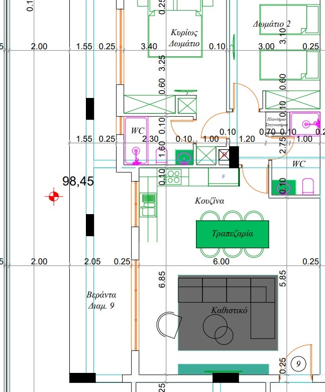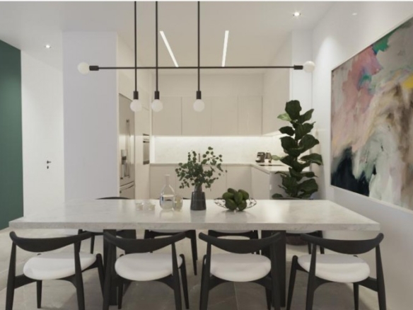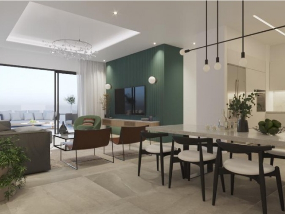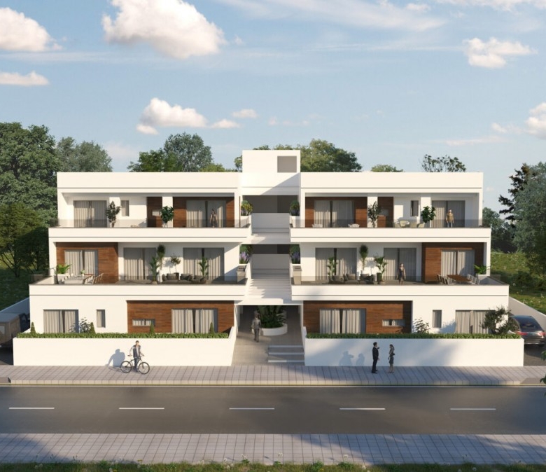 This is a newly built apartment building, comprising eight exquisite, two and three bedroom apartments on three levels. The development is located in a quiet residential area of Frenaros, offering easy access to a wide range of amenities such as shops, restaurants and banks. Designed with ergonomics and the modern way of life in mind, each apartment offers a wide range of features, such as double glazed low energy glass doors in all areas, pressurized water system and en-suite facilities. Each apartment boasts high-specification interiors. Large floor to ceiling doors, lead to spacious verandas in every unit, while the modern, open plan layout, creates a pleasant feeling of openness. High quality materials and finishes are used throughout each apartment, from the state-of-the-art kitchen, to the spacious living, dining area and bedrooms.