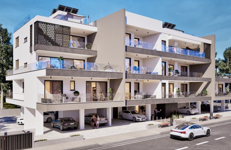 This contemporary residential project in a new, quiet neighborhood of Aradippou offers thoughtfully designed 1- and 2-bedroom apartments, ideal for modern living. Surrounded by green parks and just minutes from the Metropolis Mall, the development enjoys an excellent location with easy access to Nicosia and Limassol highways, Larnaka city center, the beach (5km), and the international airport (11km). Each apartment boasts energy efficiency (Certificate A), granite kitchen worktops, ensuite walk-in showers, large verandas, and high-quality finishes including thermal aluminum double-glazed windows, marble staircases, and glass veranda railings. Residents benefit from video intercom systems, covered parking, individual storage units, and provisions for air conditioning and electric car chargers, while penthouses feature private roof gardens.Completion: December 2027
