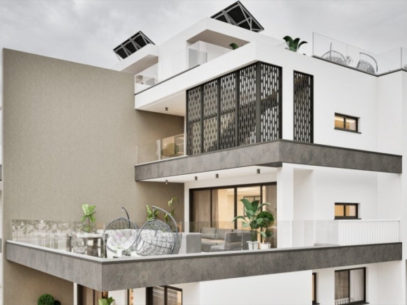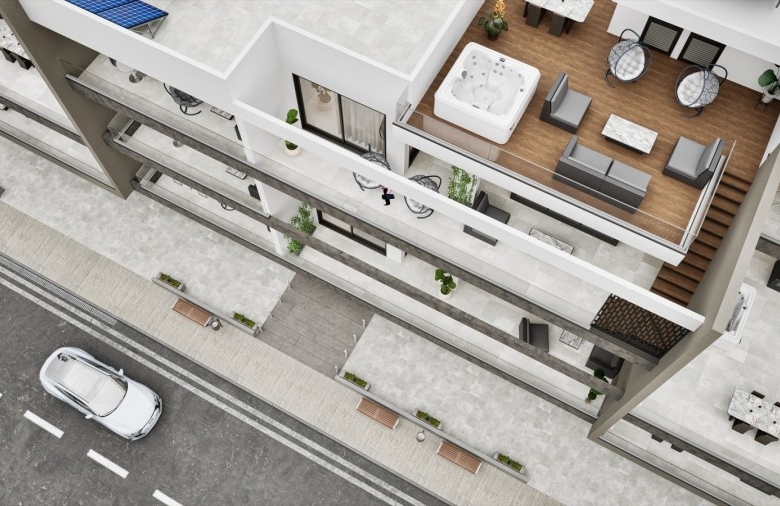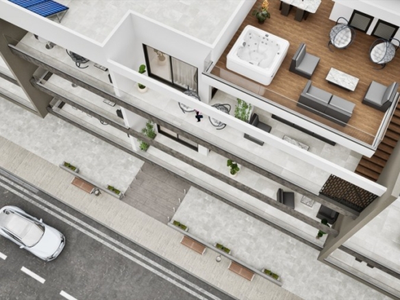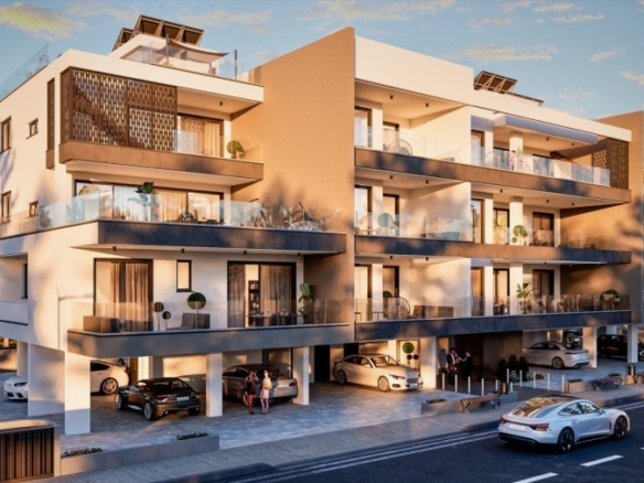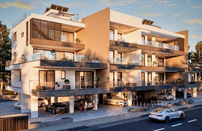 This contemporary residential project in a new, quiet neighborhood of Aradippou offers thoughtfully designed 1- and 2-bedroom apartments, ideal for modern living. Surrounded by green parks and just minutes from the Metropolis Mall, the development enjoys an excellent location with easy access to Nicosia and Limassol highways, Larnaka city center, the beach (5km), and the international airport (11km). Each apartment boasts energy efficiency (Certificate A), granite kitchen worktops, ensuite walk-in showers, large verandas, and high-quality finishes including thermal aluminum double-glazed windows, marble staircases, and glass veranda railings. Residents benefit from video intercom systems, covered parking, individual storage units, and provisions for air conditioning and electric car chargers, while penthouses feature private roof gardens.Completion: December 2027