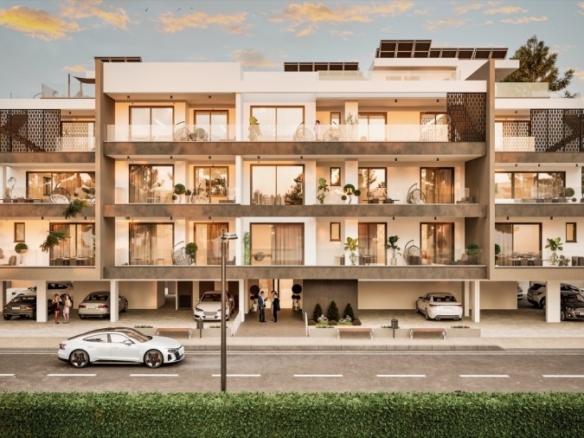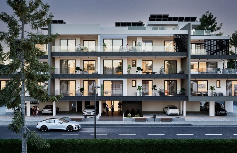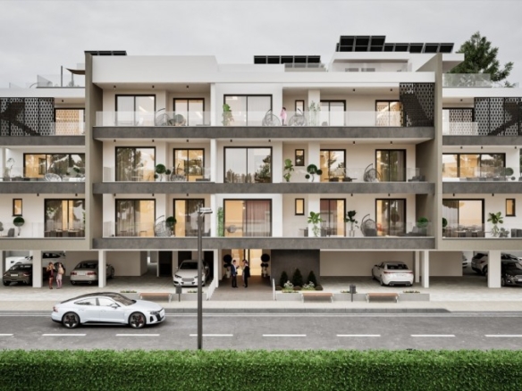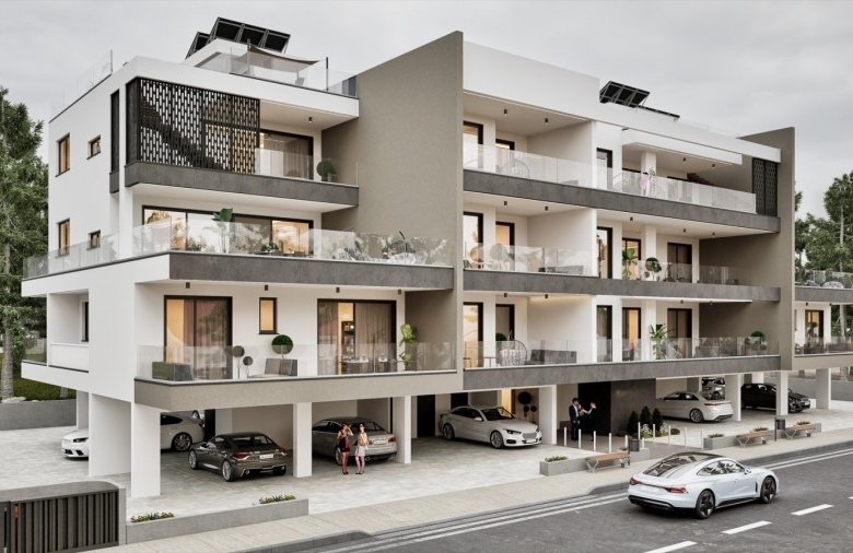 This contemporary residential project in a new, quiet neighborhood of Aradippou offers thoughtfully designed 1- and 2-bedroom apartments, ideal for modern living. Surrounded by green parks and just minutes from the Metropolis Mall, the development enjoys an excellent location with easy access to Nicosia and Limassol highways, Larnaka city center, the beach (5km), and the international airport (11km). Each apartment boasts energy efficiency (Certificate A), granite kitchen worktops, ensuite walk-in showers, large verandas, and high-quality finishes including thermal aluminum double-glazed windows, marble staircases, and glass veranda railings. Residents benefit from video intercom systems, covered parking, individual storage units, and provisions for air conditioning and electric car chargers, while penthouses feature private roof gardens.Completion: December 2027