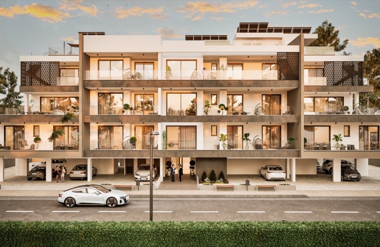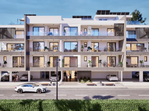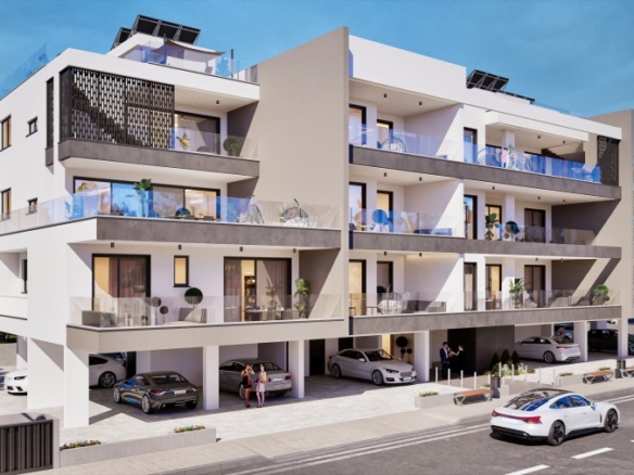 This contemporary residential project in a new, quiet neighborhood of Aradippou offers thoughtfully designed 1- and 2-bedroom apartments, ideal for modern living. Surrounded by green parks and just minutes from the Metropolis Mall, the development enjoys an excellent location with easy access to Nicosia and Limassol highways, Larnaka city center, the beach (5km), and the international airport (11km). Each apartment boasts energy efficiency (Certificate A), granite kitchen worktops, ensuite walk-in showers, large verandas, and high-quality finishes including thermal aluminum double-glazed windows, marble staircases, and glass veranda railings. Residents benefit from video intercom systems, covered parking, individual storage units, and provisions for air conditioning and electric car chargers, while penthouses feature private roof gardens.Completion: December 2027