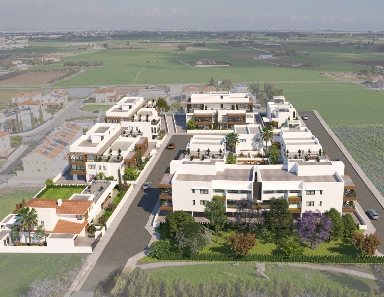 A new concept is coming to life in Kiti area, Larnaca! Combining apartments and luxurious villas, the project also includes a swimming pool and a kids playground! This unit has a garden area of 18.5 square meters.