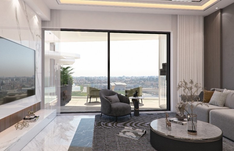 The one-bedroom apartment offers a stylish and functional living space, featuring floor-to-ceiling windows, high-quality finishing materials, and a well-planned layout that maximizes comfort. The interiors include large-format elegant tiles, built-in kitchens and wardrobes, and decorative false ceilings with subtle lighting for a refined atmosphere. Bathrooms are equipped with electric towel rails, while the seamless integration of the living, dining, and kitchen areas creates an open and inviting ambiance. Residents can also enjoy a private balcony, extending their living space outdoors, all within a secure, amenity-rich complex designed for modern urban living.