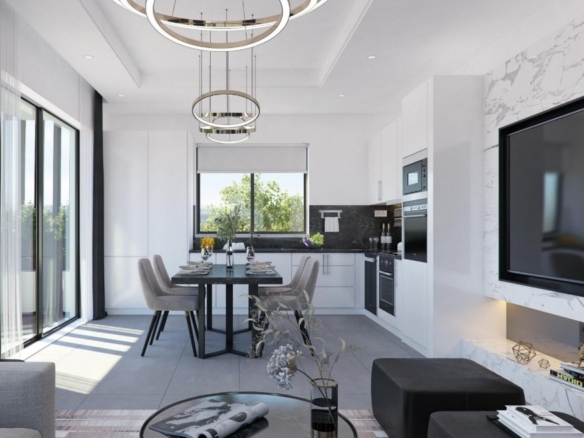Nestled in the prestigious New Drosia neighborhood-rated. This collection of ten luxury, smart‑home apartments is ideally suited for families, offering underfloor heating and heated towel rails in every bathroom, plus a photovoltaic system for the penthouses. Just 200 m from the Salt Lake and Nature Reserve Park and 50 m from a communal green space, it’s also minutes from local schools and amenities, a quick 3‑minute drive to Metropolis Mall, and only a 5 minute drive to both the airport and the Finikoudes/Mackenzie Beach area.Delivery: 28th February 2027