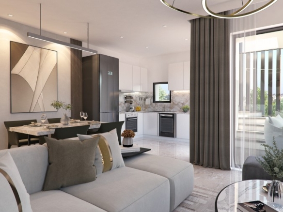 This two-bedroom apartment is thoughtfully designed with high-end features to ensure convenience and sustainability. It boasts energy efficiency Class A standards, a smart control system for seamless integration with smart TVs and equipment, and fiber optic internet connectivity for high-speed communication. The apartment is equipped with an intercom system, provisions for telephone and TV extensions in all bedrooms, and upgraded standard light fittings. Utility features include a solar energy system, water pressure and softening systems, an RO water filter, and a hot water return pump for instant hot water. The property also provides provisions for a dishwasher, washing machine, and electric car charging. Additionally, the building incorporates a photovoltaic system for common areas, ensuring eco-friendly energy use. Situated in a prime residential area near the Metropolis Mall, communal parks, and key amenities, this apartment perfectly combines modern living with environmental consciousness.