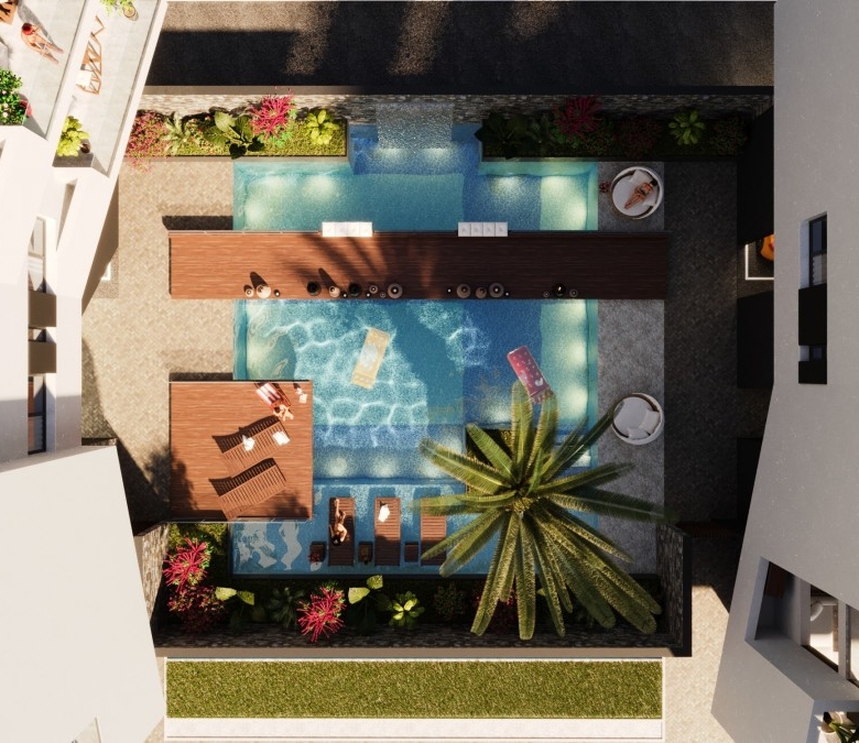 A harmonious blend of modern luxury and ancient inspiration, stands proudly in the heart of Larnaca, Cyprus. The compound seamlessly merges comfort, elegance, and tranquility. Offering a selection of 1, 2 and 3-bedroom apartments, each a testament to modern living. Adding to the allure, every residence comes with its dedicated parking space, ensuring both convenience and security for residents, as well as storage rooms for every unit. The commitment to individual comfort and well-being extends beyond the private quarters into the shared spaces that foster a sense of community. As residents step into the exterior communal areas, they are greeted by a crystalline swimming pool, a recreational lounging area which offers a space for residents to unwind and socialize, and a children’s playground, thoughtfully designed and equipped, ensures that every member of the family finds joy and entertainment within the compound. Standing as a testament to the fusion of ancient inspiration and contemporary living, offering a unique and enriching experience for those who call it home. Delivery-July 2026
