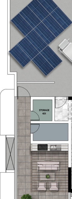 This unit has a roof garden area of 40 square meters.