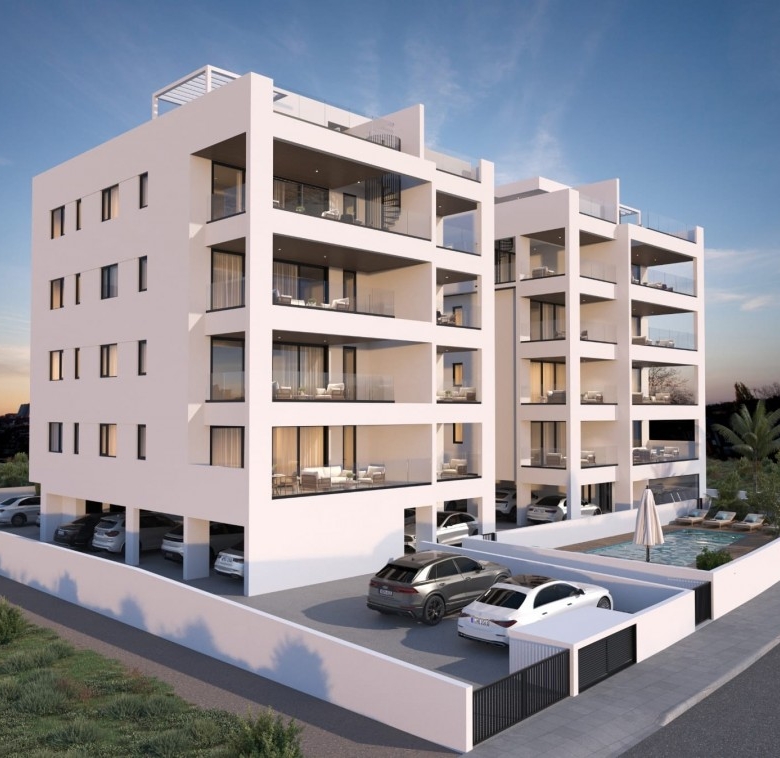 This project is a modern residential development located in the serene Livadia area of Larnaca, Cyprus. Situated just 300 meters from the sea, the project comprises two three-story blocks offering a selection of one-, two and three-bedroom apartments, with sizes ranging from 52 to 112 square meters. Designed to provide spacious and contemporary living spaces, each apartment includes a private parking space and a storage room on the ground level. The development is nestled in a quiet, family-oriented neighborhood, surrounded by luxury homes. It offers easy access to supermarkets, educational institutions like the American University of Larnaca, and major highways connecting to Nicosia, Limassol, and Paphos.Delivery – 30 months.