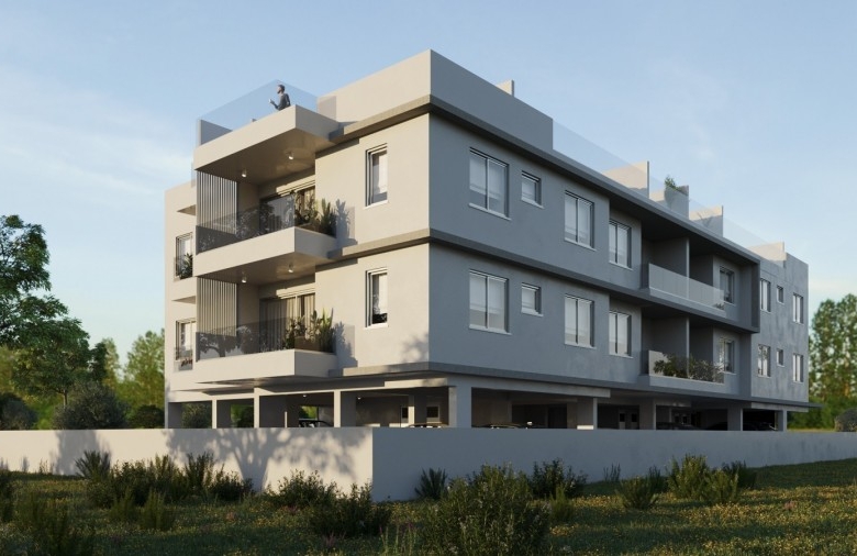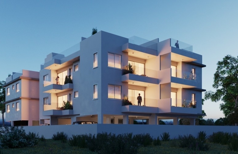 This contemporary residential development is located in Oroklini, Larnaca, just 2 kilometers from the beach and 8 kilometers from the city center. Comprising 14 apartments—eight one-bedroom and six two-bedroom units—the complex offers modern living spaces with open-plan kitchens, cozy bedrooms, and spacious verandas. Select second-floor apartments feature private roof gardens, providing additional outdoor space. Each unit includes a covered parking space and a storage room on the ground floor. The building is equipped with an elevator and boasts high-quality finishes such as marble flooring in the lobby, granite kitchen countertops, and double-glazed thermal aluminum windows. With an energy efficiency rating of A+, the project is designed for comfortable and sustainable living. Construction is expected to begin in early 2025, with completion anticipated by summer 2026.