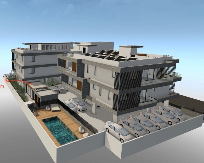 This project is a multi-residential development designed with a focus on contemporary living, functionality, and shared luxury amenities. It consists of multiple levels, including a ground floor, two upper residential floors, and a rooftop garden area. The development includes a variety of apartment units ranging in size, with thoughtfully designed interiors that feature living rooms, dining areas, kitchens, bedrooms (including master bedrooms), and bathrooms. The ground floor incorporates communal facilities such as a gym, a pool with mechanical support areas, and designated guest zones, along with garden spaces for ground-floor units. All residential floors are served by an elevator and include covered verandas for each flat. The rooftop is designed with private garden areas for select units, enhancing outdoor living with panoramic views and additional relaxation space. The project also integrates accessible design features, dedicated parking (including disabled spaces), and high-quality construction materials, including reinforced concrete finishes, thermal-insulated aluminum windows, laminated glass balustrades, and wooden decking.