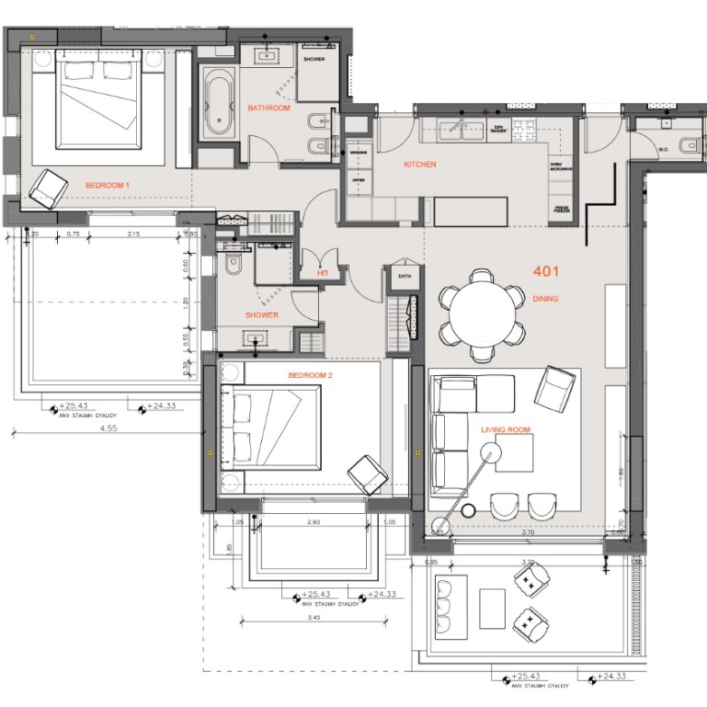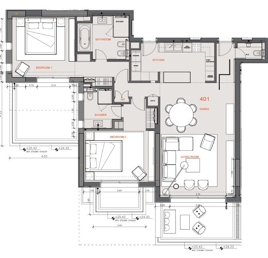 These luxury two-bedroom apartments feature two spacious bedrooms and bathrooms and a large, light-filled kitchen and living area flanked by floor-to-ceiling windows.A bright and airy interior space is illuminated by an abundance of natural light that streams in from the windows, while the view of the Mediterranean Sea beyond brings breezy island life straight into your home. The skillfully designed apartment features an interior where warm wood and muted tones dominate, making it pleasing to the eye, and ultimately comfortable and highly functional.There is a free flow of movement across the open-plan living areas, creating a feeling of constant connection that is accented by the generous balconies that extend out and overlook the horizon. In this way, the beautiful outdoors is never out of sight.