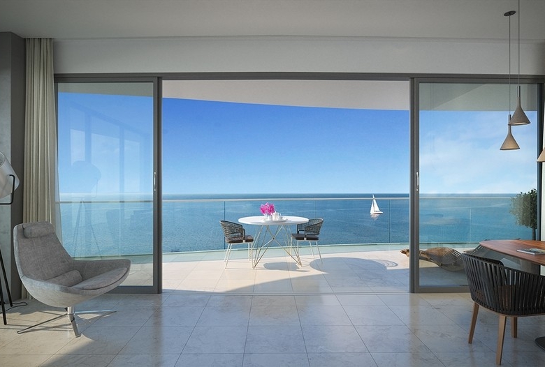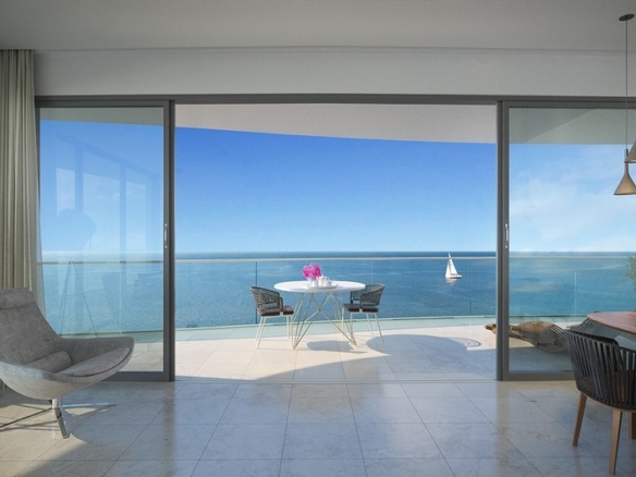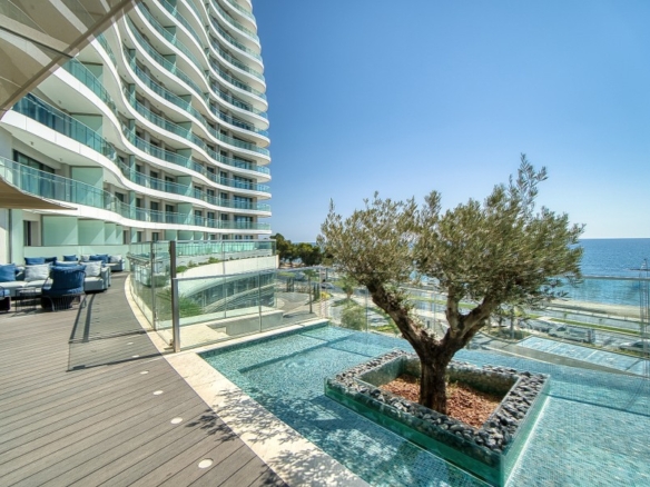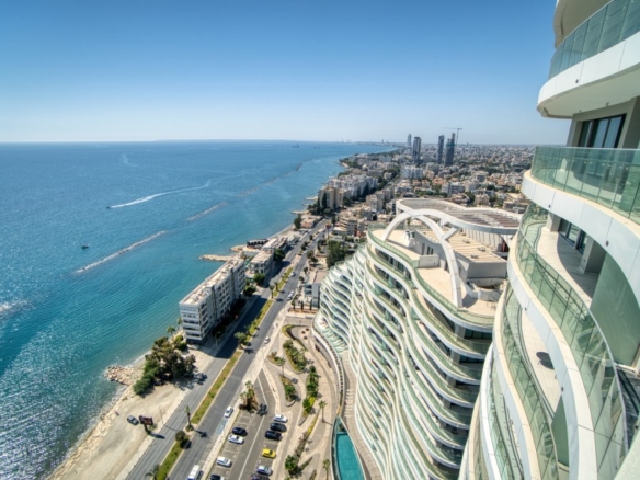 Sea front luxurious apartment in Limassol tourist area offering uninterrupted sea views from spacious verandas and full height glazing seamlessly merges the interior with the exterior, adding to the immense sense of space. Located in the heart of the popular 17 km-long promenade along the coastline, project will be built on a large plot of 34,000 sq m, stretched across the 170 meters of the land’s sea frontage, allowing magnificent sea views from ground to top floor. Situated close to the most prestigious residential areas and five-star hotels, the development is aiming to transform Limassol’s seafront. The project will be surrounded with beautiful, lush landscaping, and will have extensive parking available, including allocated parking for residents.