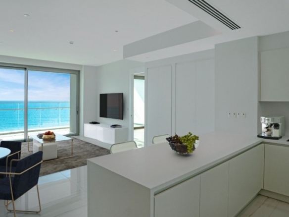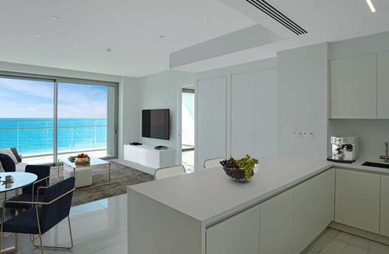 The bespoke interior package brings sophisticated elegance to every room. The living area includes a stunning ALBA sofa, two BREZZA armchairs and an ISOLA metal coffee table. The dining room features a striking ACQUA metal and glass table, dining chairs and bar stools. In the bedrooms, metal and eco leather combine on the furniture alongside The Signature Collection exclusive branded duvets. The Italian kitchen, designed by Arclinea, has integrated Miele appliances showcasing the enhanced specifications throughout the apartment. The en-suite bathrooms include custom made vanity cupboards, Duravit fittings and Hansgrohe taps and mixers throughout. There is another one apartment exactly the same and with the same price.