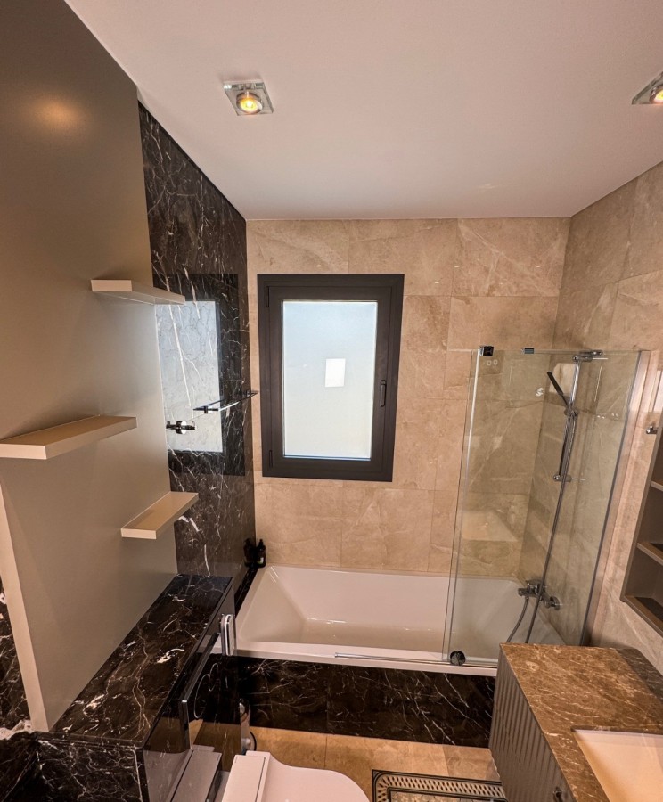 In this modern residence, there are only 28 two-and three-bedroom luxury apartments, garden apartments and penthouses. The cleverly designed master plan provides the residents with easy access to the common pool, gym, landscaped gardens, kid’s playground, and covered parking. The top floor apartments(penthouses) have spacious private terraces with individual pools. Each apartment enjoys 3.15 meters height ceilings; top quality finishes and offers absolutely breathtaking 360 degree views of the Mediterranean Sea, mountains and the Limassol city.