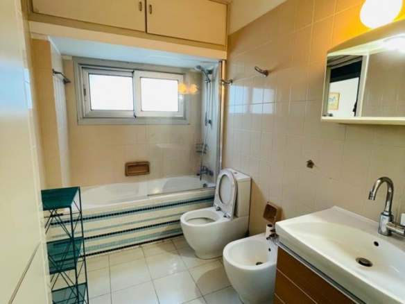 Large apartment located in the area of Agios Tychonas in Limassol. It is taking place in a very well kept complex, which consist of private gardens and swimming pools. Walking distance to famous hotels, beaches, shops, cafes, restaurants. A spacious living room, 3 bedrooms (2 of them with terraces and sea views), a large bathroom, a guest bathroom, an individual kitchen equipped with household appliances, and a laundry room.Rent price: 2200 per month