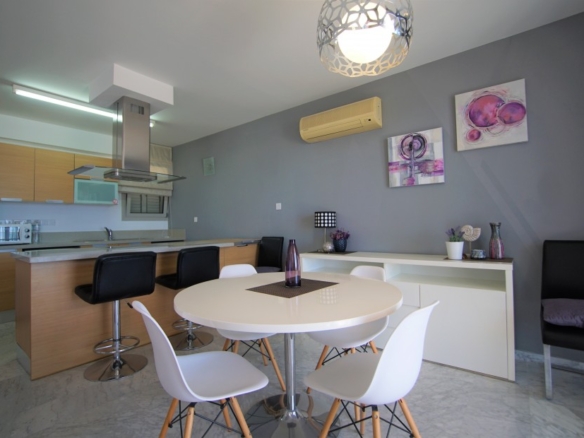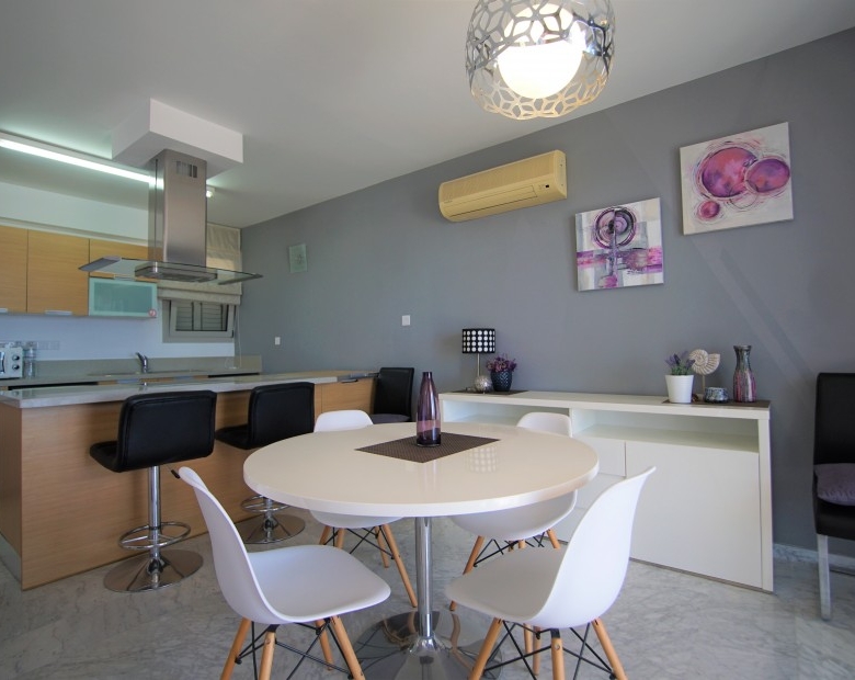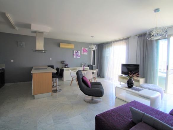 Exceptional 2 bedroom apartment on the top floor which originally has been provided as a penthouse offers magnificent views of Saint Raphael Marina, sparkle Mediterranean sea from heights of Amathusa. Bright and well positioned apartment has both mountains and sea view as well as sun lighted rooms which gives a warmth and cozy living. Apartment comprises of 82 sqm inner area and uncovered veranda of 25 sqm to enjoy the gather with amazing views of surroundings. Being just within a minute of walk tot he beach, restaurants and 5* hotels this property is a great investment for the home to be !!!