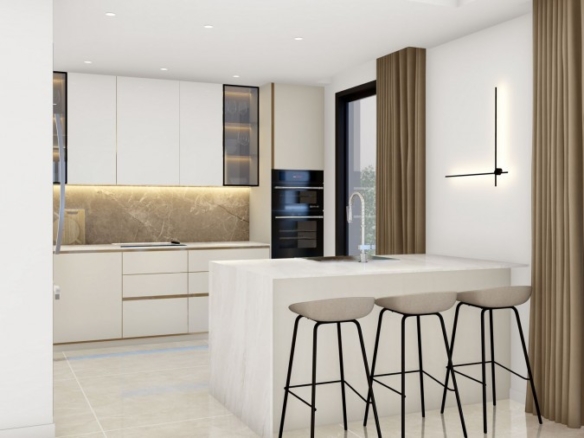 New project consists of two buildings made up of 1, 2 & 3 bedroom apartments, and 3 bedroom Deluxe Penthouses offering private rooftop pool and unobstructed sea views. Surrounded by tranquil landscaped gardens, generous terracing, relaxation & entertainment areas and outdoor pool. Designed to feel part of the vibrant town center but with the utmost privacy in mind.Delivery – October 2025
