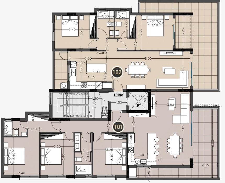 This project thoughtfully designed with modern living in mind, it combines impeccable architecture, premium residential facilities, and a prime location surrounded by nature. This upscale residence is ideal for families and professionals seeking both comfort and privacy. The development consists of three floors, each featuring one spacious two-bedroom and one three-bedroom apartment, all crafted to the highest standards. Every home includes a covered veranda, offering an inviting outdoor space to unwind. Additionally, residents will benefit from covered parking, ensuring convenience and security in this exclusive living environment.Delivery – January 2027