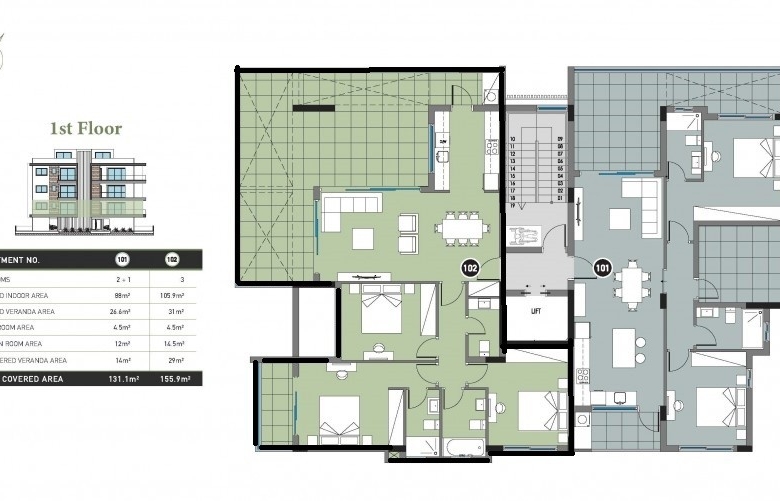 Located in Columbia Area, complex of only 6 apartments, high specifications, underfloor heating Italian Kitchens, etc. Convenient location, walking distance to supermarket and amenities Α stunning new private estate of apartment residences, offering a modern and truly luxurious environment, located in the exclusive Columbia Area of Limassol, in the heart of Cyprus’ most cosmopolitan destination. Designed to feel part of the vibrant town center but with the outmost privacy in mind, offering a truly contemporary environment, surrounded by serene landscaped gardens& relaxation areas. A small private complex of only 6 apartments, with spacious 3 or 2 bedroom units on each floor.This unit features covered veranda of 31sqm and uncovered veranda of 29sqm. Delivery – June 2026