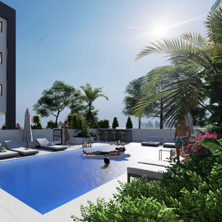 This is a unique project of modern style apartments. It is located in a residential area of Limassol (Polemidia neighborhood). The modern apartments consist of two 4-storey buildings, one with four apartments on each floor and the other with three apartments on each floor. From the garden and the lounge area on the roof of the apartment you can enjoy breathtaking views of the city. The building contains 12 luxury apartments, each floor has 4 apartments with 2 beds and 2 bathrooms. All units have natural light on three sides. Each has a balcony and a storage room and other functional spaces. The design of multiple balconies and multiple terraces allows residents to truly enjoy the romantic life of the sunny Mediterranean. Swimming pool. The Project has EPC certificate with “A” Energy Efficiency Rating. Delivery-December 2026