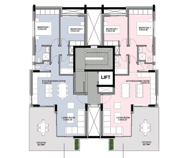 This new development is located in the prestigious, residential area of Laiki Lefkothea, a top a hill boasting picturesque views of the western part of Limassol below and the azure blue waters of the Mediterranean beyond.This elegant, contemporary residential complex comprises three floors of six well-designed two-bedroom apartments, and is located a mere 6km from Limassol’s buzzing city center, and a stone’s throw from the city’s stunning coastline. The modern residences are ideal for families, thanks to the quiet seclusion of the surrounding residential neighborhood, but also the wealth of nearby amenities, including schools, shops, and local eateries.Each of the six apartments are comfortably spread out across three floors, thus creating a sense of privacy and security as well as the added benefit of a generously spaced out home, while still allowing for a sense of community and neighborliness among residents.Additionally, each apartment features 2 parking spots with a storage room. The interiors include solid engineered 2-layer wooden flooring and high quality ceramic tiles. Verandas are finished with quality synthetic decking, enhancing both durability and aesthetics. Each apartment is also equipped with a photovoltaic panel system, which covers both the apartment and common areas, promoting energy efficiency and sustainability.Completion – December 2027