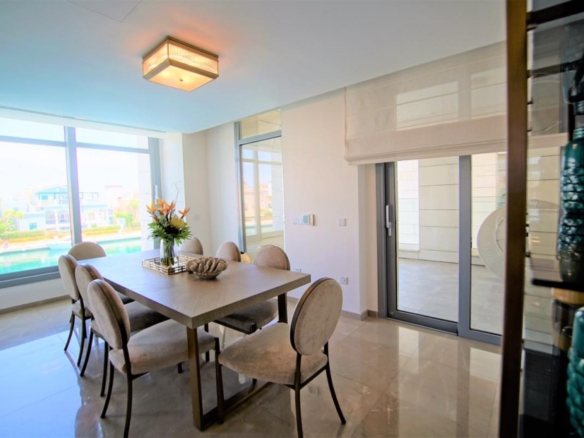 This amazing 4 bedroom apartment is a part of the Limassol Marina, an exclusive waterfront development which combines elegant residences and a state-of-the-art marina with a range of fine restaurants and shops plus a new spa and fitness club creating a lifestyle uniquely shaped by ‘living on the sea’. It’s also just a 5 minute walk to Limassol old town where you can also find the Limassol castle and more traditional stone built shops and bars/taverns. The unique flat is surrounded by a landscaped green area with a huge communal swimming pool enjoying uninterrupted sea views and also has access to a private beach! The apartment comes furnished with electric under floor heating, a/c installed, oven, hob, extractor fan, refrigerator, washing machine and dish washer. Also a good size veranda to lay back and relax.