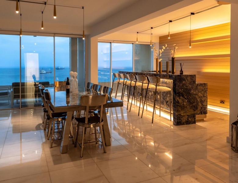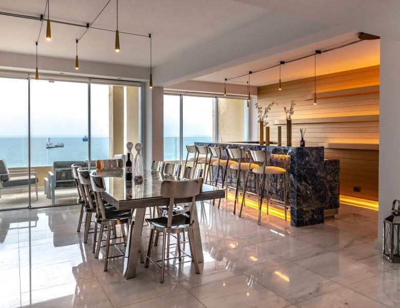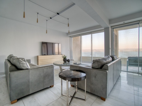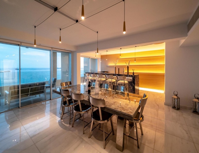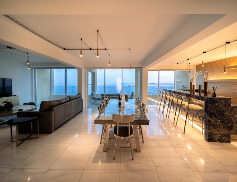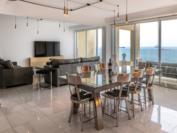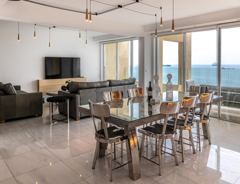 RentedA luxury apartment for sale at Molos area, Limassol. It is located in a prime location within walking distance to the beach, Limassol marina and the old town. Everything you need! The apartment is on the 7th floor which is the top floor where it offers panoramic views from every corner with its floor to ceiling windows. Offered fully furnished to the highest standards. It consists of 3 bedrooms all with their own en suites and storage, a huge open plan space which consists of a fully equipped kitchen with Miele appliances, living area, dining area, bar and private covered balcony right opposite the sea.