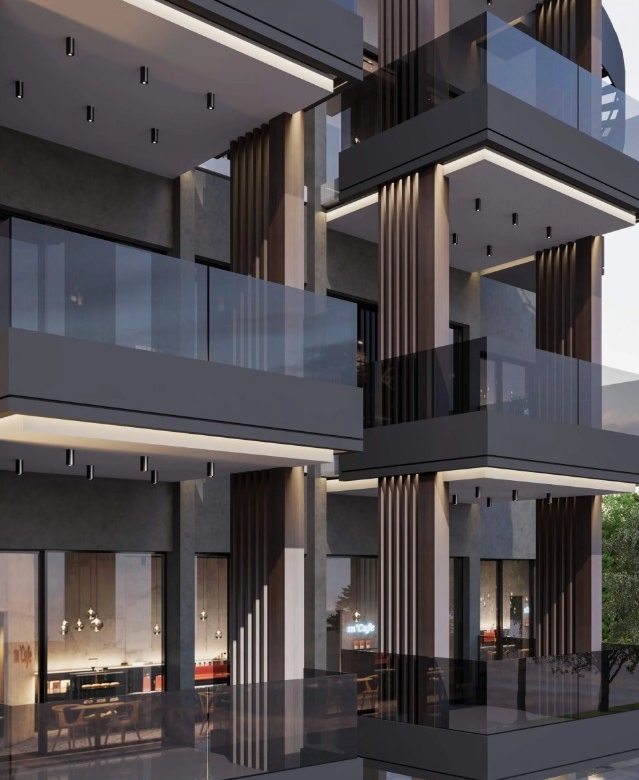 The sleek lines and minimalist aesthetic create a striking visual presence that harmonizes with the surrounding landscape. The use of high-quality materials, including textured panels and glass elements, enhances its modern appeal, offering a timeless yet forward-thinking design.