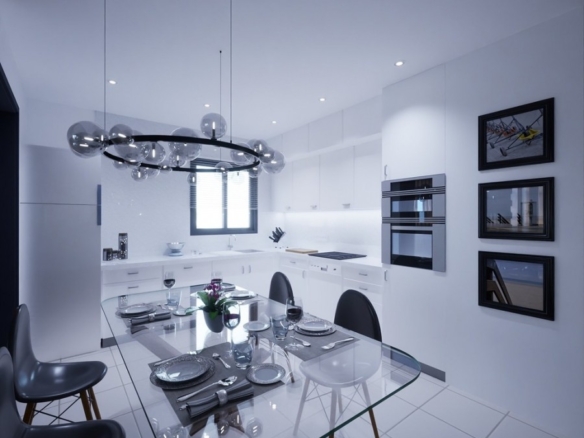The residential complex is located in the popular tourist area of Neapolis – the city center with all kinds of entertainment and beautiful sandy beaches that are within walking distance. It is convenient to get to the airport, the road there will take no more than 40 minutes. A six-storey high-tech building with a private pool and sun loungers. There are 6 apartments in total – 3 bedrooms and 2 penthouses with 3 bedrooms and a rooftop seating area . The complex has a swimming pool, sauna, gym, sunbathing area, 200 meters from the sea.