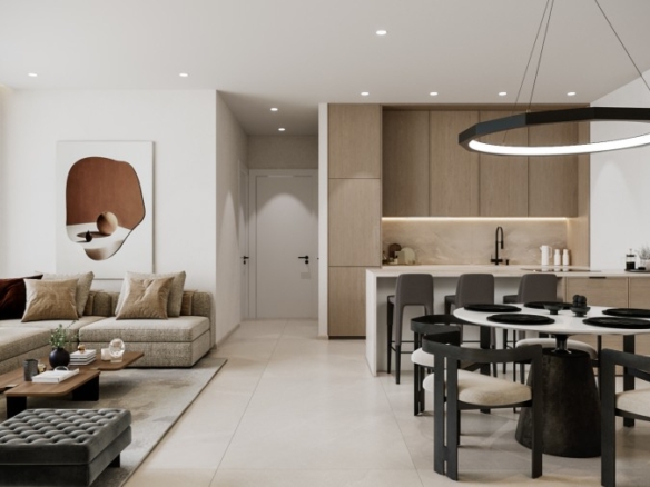 The residential complex consists of 12 apartments with a gated area. The complex has a large swimming pool, a sunbed area and underground parking. The magnificent landscaping of the complex creates the coziness and privacy of the location. The apartments are delivered in a high-spec finish. Specifications include underfloor heating, double glazing, kitchen units, air conditioning, built-in wardrobes and quality sanitary ware.