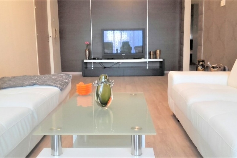 First line luxury 3 bedroom apartment for sale in Germasogeia tourist area, Limassol. The property is located front line with amazing sea views throughout and a sandy beach within a few steps. Building has been recently renovated externally. There are also solar panels, double glazed windows and water pressure pump.