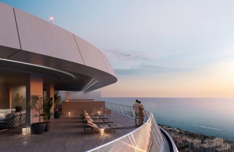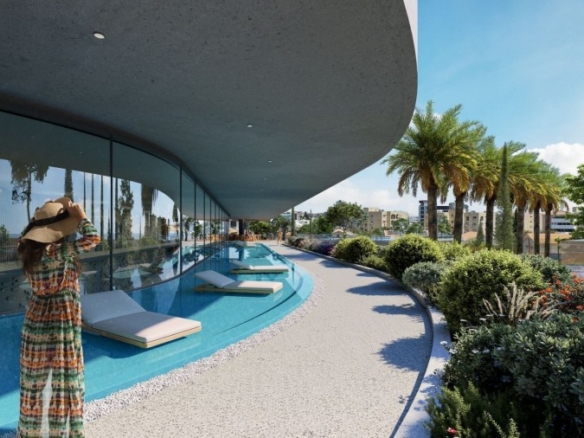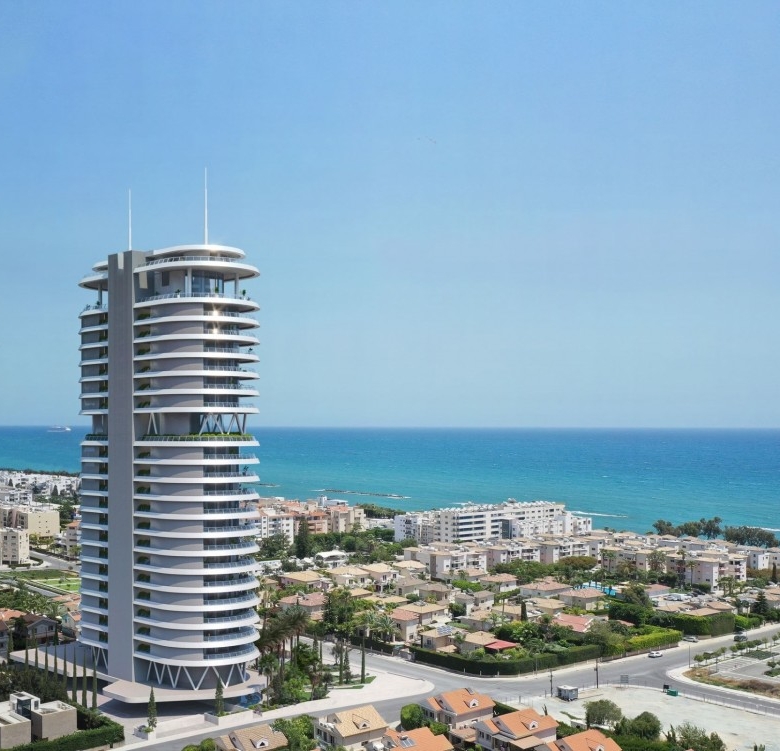 Located in one of the best areas of Limassol, 200m from the sea, a luxurious high-rise residential project spanning vertically over 25 storeys. Set to be completed in 2025, the project is designed to resemble a floating structure above the waterfront, welcoming those who long to reside in a fully integrated urban development with style and highest specifications. Using lightness, transparency and luminosity as an architectural language, attempting to blend sky, sea, and ground seamlessly. It uses reinforced concrete structure, bricks for internal walls, glass, wood, and introduces luscious landscaped areas both with its gardens on the ground floor as well as the 16th level Executive floor/Sky Garden/Restaurant, to enhance the tranquil atmosphere created for the residents. The vast variety of communal features that have been accommodated within the design in order to serve the residents only reinforce this sense of luxury. The linearity in the geometry of the square, which spans over 1600m2 directs the visitors towards the building while accentuating its connectivity to the seafront. Upon entering into the 3000m2 private gardens, the residents are surrounded by the synergy of the different elements; the water and rich landscaping along with private and protected recreational space. The elevated, external 25-meter swimming pool, acts as a focal point around which the private spaces develop, working as a continuation of the square’s geometries, creating a connection between the lower entrance levels of the development. The large indoor heated swimming pool adds up to the amenities of the project. The Wellness & Spa zones that are directly adjacent to the main Swimming pool area, encompass numerous amenities for the residents to enjoy. An absolutely unique feature is it comprises two lounge/barbeque areas at each residential floor (except the penthouses) with centralized extraction system and all facilities. All 65 apartments and 2 magnificent penthouses of the project were carefully designed in order to enjoy uninterrupted sea views, providing that sought-after luxury island lifestyle. The internal finishes are all hand-selected as part of exclusive finishes encompassed within the project. Natural marbles and granites, top niche wood flooring and Italian kitchen and wardrobes dress the internal of the properties. The three level penthouses located on the top floors of the building, offer exclusive 360 views of the city, private roof gardens as well as private infinity swimming pools. Combining a wide range of luxury features and amenities, becoming a flagship to the island, and the place to live. The apartments offer the ultimate in calm, elegance and simplicity of leading contemporary design, while providing spectacular views across the sea and Limassol skyline.Covered veranda includes covered sun deck 287.1 sq.m. and covered roof terrace 113.1 sq.m. Uncovered veranda includes uncovered roof terrace 422.2 sq.m.