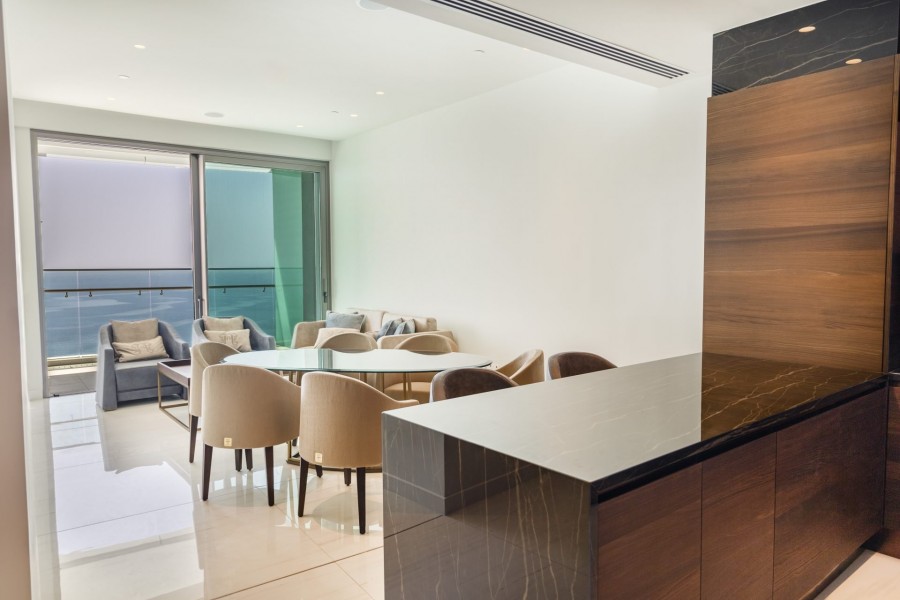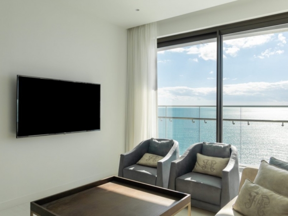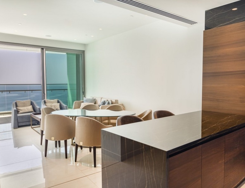 A Seafront apartment that enjoys breathtaking views of the Mediterranean Sea at every angle. Being part of an impressive project, it expresses the island’s ‘new wave’ of architecture through its unique high-rise curvilinear design, which fully capitalizes on the plot’s 170 metres long sea frontage.It is strategically located right on the Limassol seafront, easily accessible and very close to the city’s luxury hotels in the heart of the city’s most vibrant and prestigious area. With its five-star services and facilities, it will blend with a collection of gastronomic and shopping experiences at Cyprus’ most sought-after residential and leisure address. Invest in property in Limassol, Cyprus, and enjoy a world of benefits.