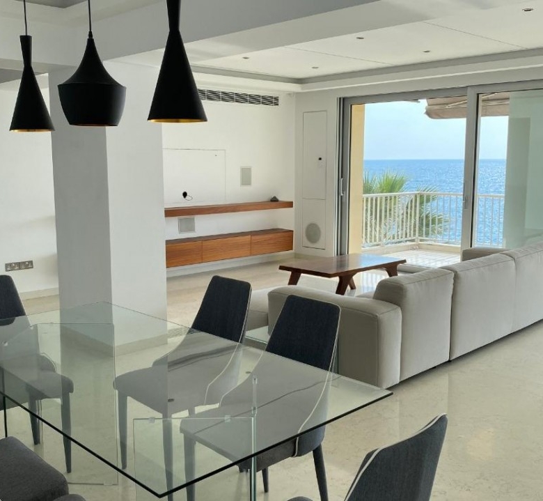 For sale 3 bedroom apartment 10 meters from the sea and offers unobstructed sea views. Excellent location close to all amenities. The apartment is completely renovated with high-quality finishes and all modern amenities, well thought out and located amidst a spacious and elegant environment. The apartment is renovated, 175 m2 + a veranda of 10 m2. The apartment has heating, air conditioning, fully equipped kitchen.
