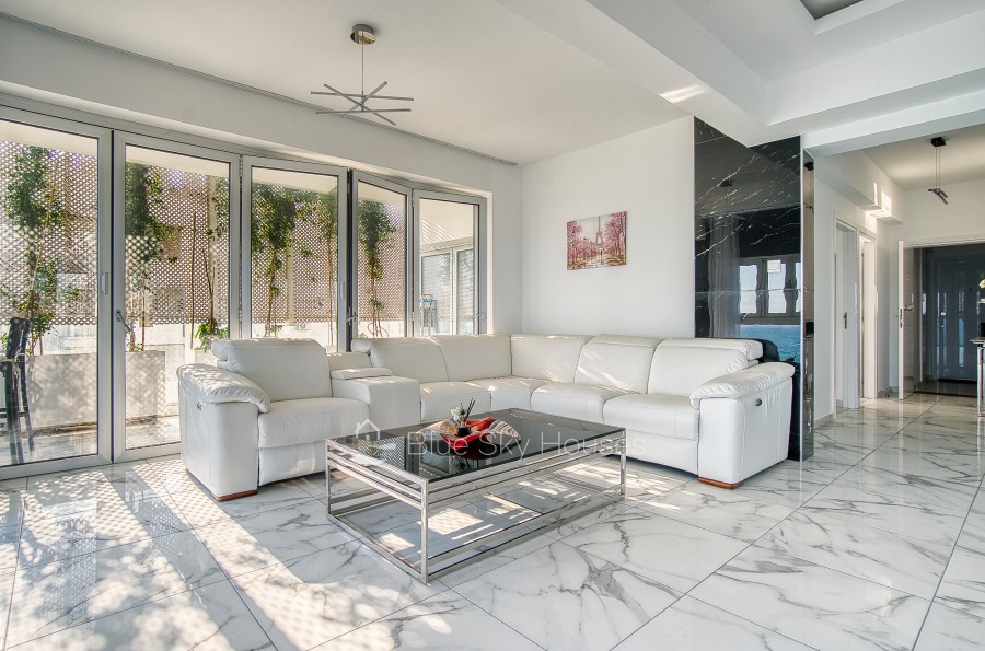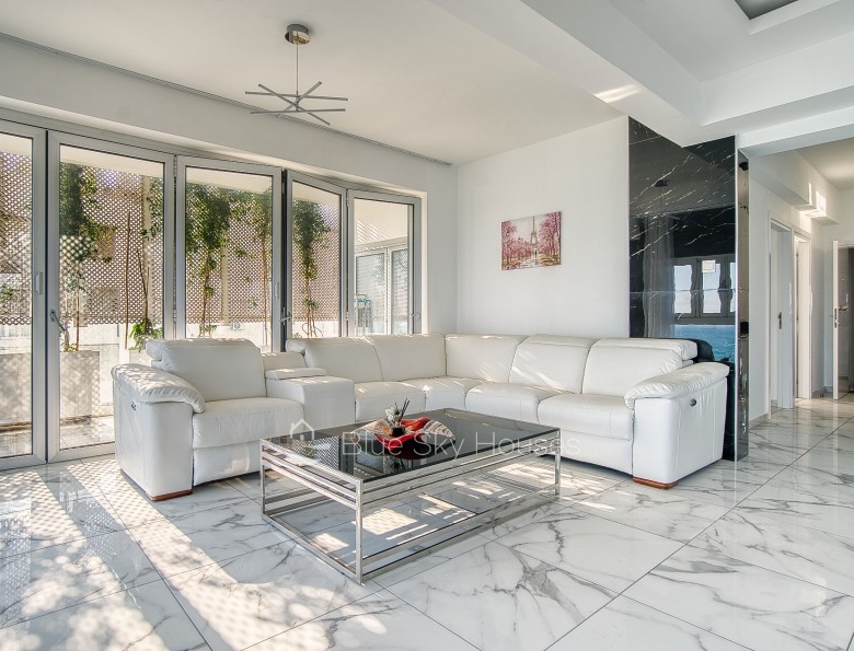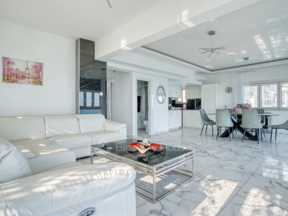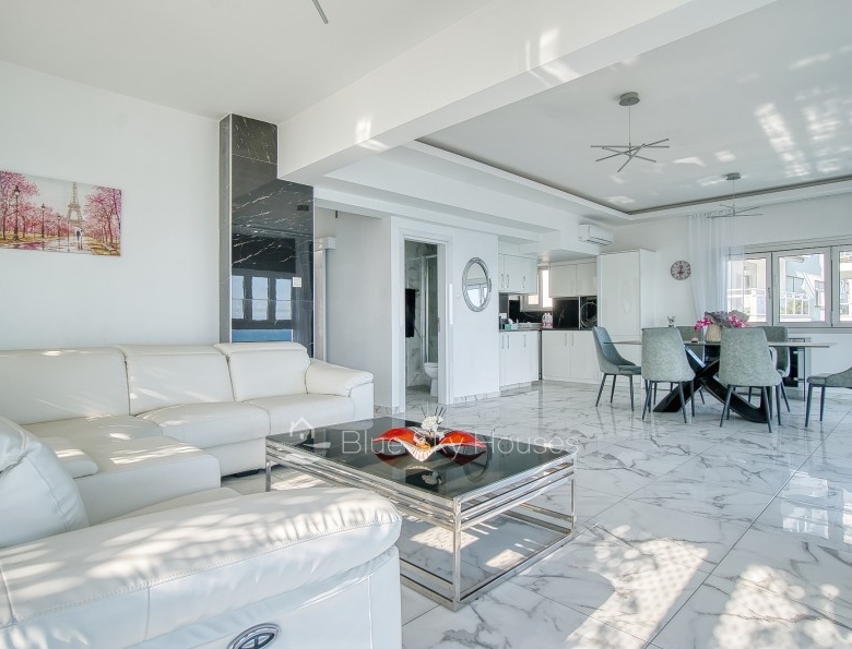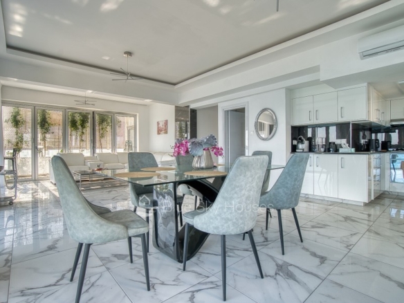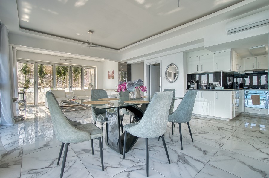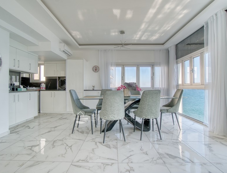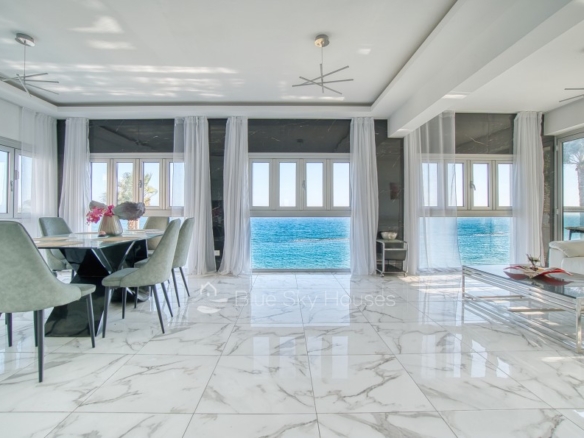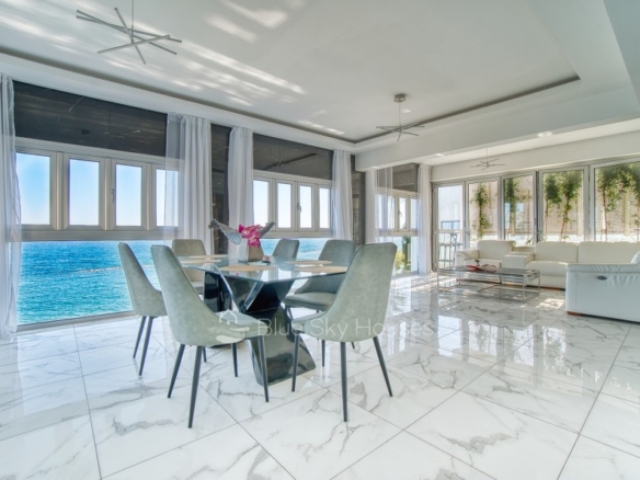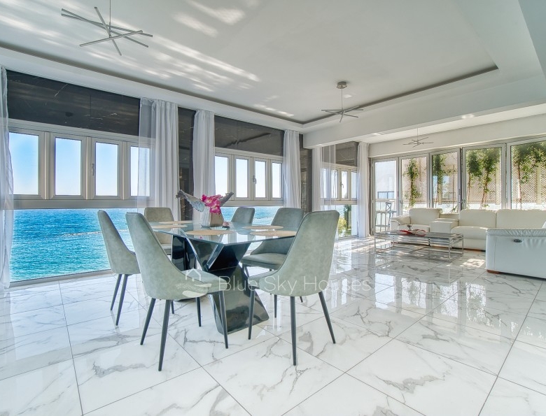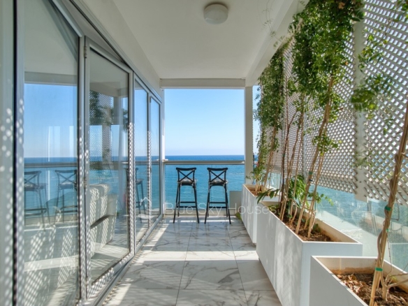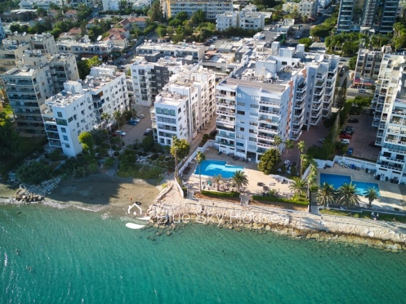 Luxury 3 bedroom apartment for sale in Germasogeia tourist area, Limassol. The property is located front line with amazing sea views throughout and a sandy beach within a few steps. Building has been recently renovated externally.This 3-bedroom apartment features two ensuite bedrooms, an additional smaller bedroom, and a separate main bathroom. The apartment consists of an open plan kitchen with granite worktops with living/dining area. There are also solar panels, double glazed windows and water pressure pump.