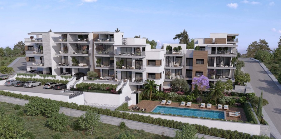 This project is located at an elevated location, nestled within beautiful surroundings and panoramic views. This gated building community consists of 4 double-storey blocks, all connected to a magnificent pool with a sun terrace and a playground, ensuring that both residents and visitors enjoy the spacious and welcoming atmosphere. Designed with convenience in mind, this residential gated community presents spacious 2&3 bedroom apartments with options for private gardens or rooftop terraces, along with underground parking and storage spaces for each apartment. Located in one of Limassol’s prestigious areas, it is committed to creating spaces for better living.This unit has a private garden of 95 square meters an a roof garden/store room of 26sqm. Delivery – September 2025.