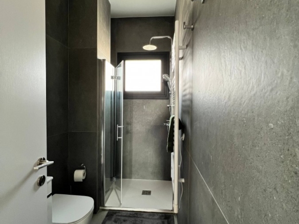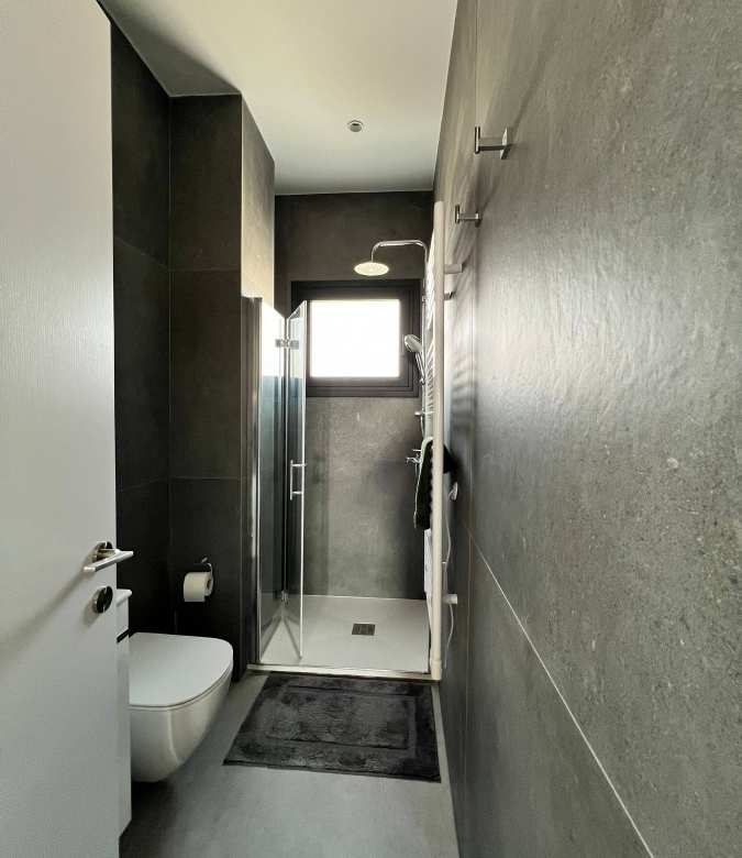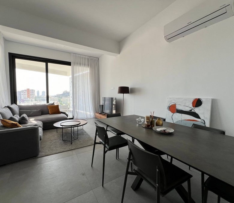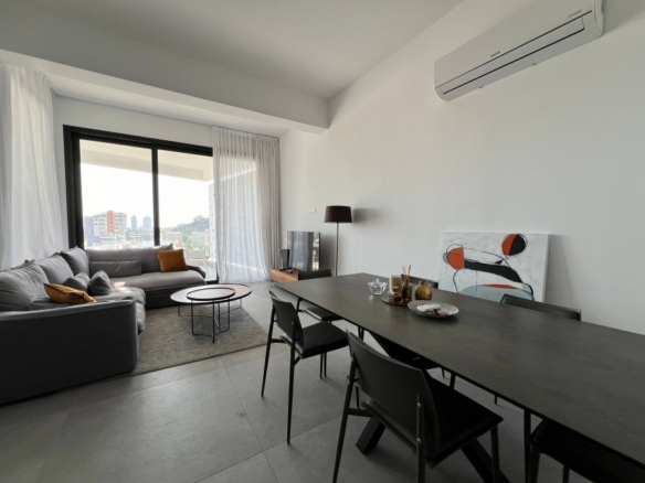 An incredible 3-bedroom penthouse on the fourth floor with a private roof garden and swimming pool offering stunning views. This penthouse, also located in Germasoyia, provides easy access to the highway, proximity to amenities, and a 5-minute drive to the beach. The contemporary design includes an open-plan kitchen and living room, a master bedroom with an en-suite bathroom, a main bathroom, and spacious covered verandas. The private roof garden with a swimming pool provides a perfect space to relax and enjoy the view. The penthouse comes fully furnished with high-end furniture, Bosch electrical appliances, a Samsung smart TV, and Samsung air conditioning units. It includes private covered parking and a storage room. The building features a large common swimming pool and a playground. This unit has a roof garden of 67 square meters.