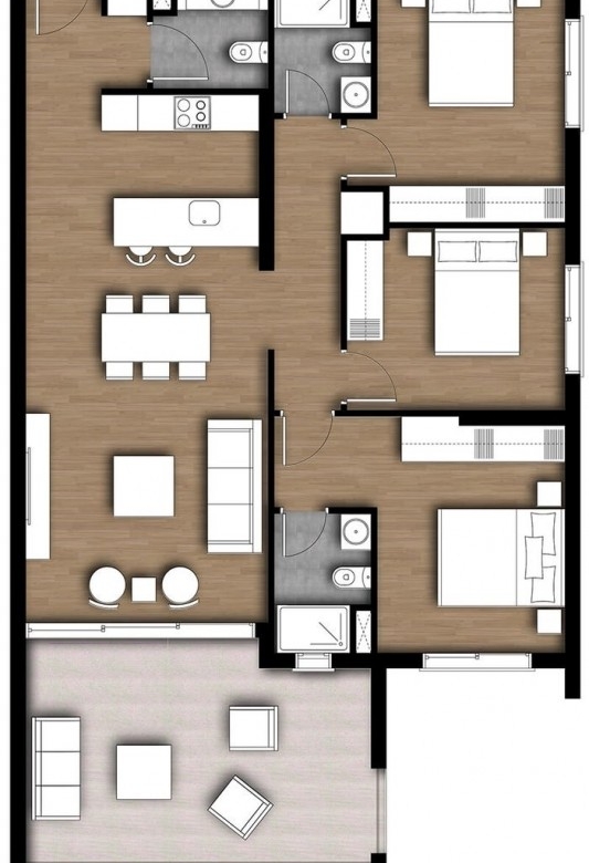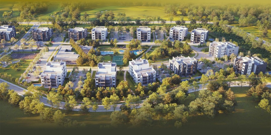 Minimalism in this project’s interior and exterior design intentionally gives maximum power to all architectural spaces. These spaces are designed to emphasize natural lighting and materials, with floor-to-ceiling glass doors framing views out to the internal gardens, the surrounding golf course, or even the Mediterranean Sea. Life on this project includes unique activities and incredible amenities. Engage with nature by riding along the green cycling path, jogging through the trees, or doing yoga against a lush backdrop. Boost your wellbeing by swimming laps in the pool, working out in the ultramodern gym, and rallying on the contemporary tennis courts.