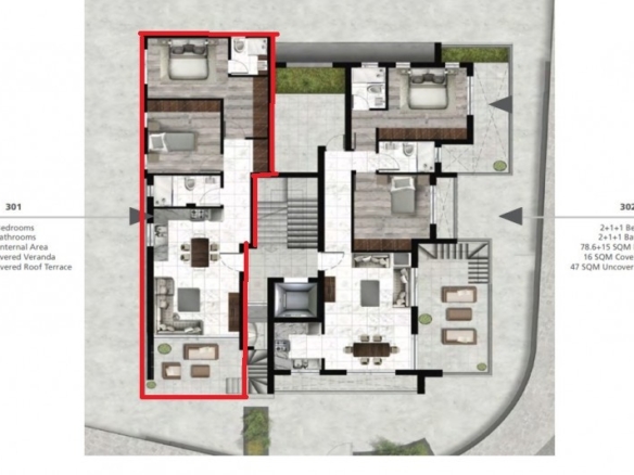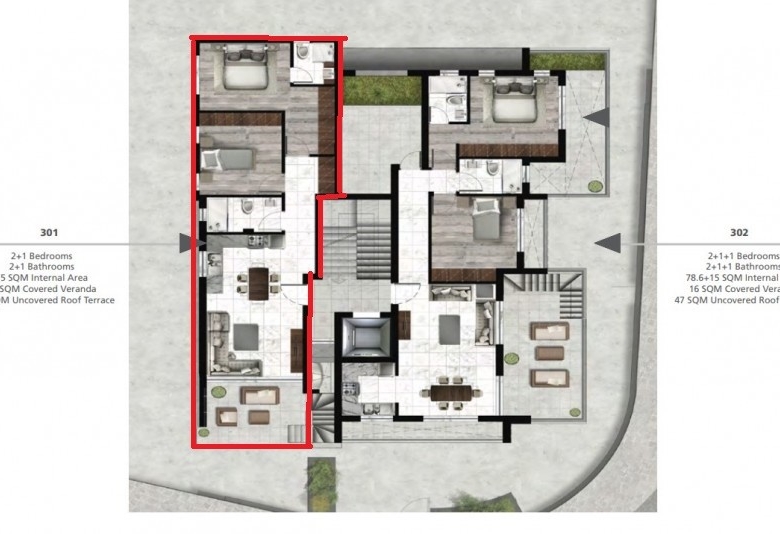 A beautifully designed project located in the Zakaki area of Limassol. This project offers a variety of spacious 1, 2, 3 and 4 bedroomы apartments as well as penthouses with roof terraces and is strategically located within walking distance of the new casino, beach and shopping center. This unit has a roof garden of 21.7 square meters.