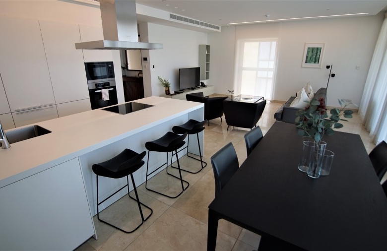 A luxury apartment in the heart of the city, Nicosia. A Prime location within a walking distance to the center, Old town as well as business centers. Everything you need! Offered fully furnished to the highest standards and designed for a pleasant living. It consists of 3 bedrooms all with their own en – suites, a huge open plan space which consists of a fully equipped kitchen with Miele & bosh appliances, living area, dining area and private covered veranda. Apartment totally benefits of location and modern life style.