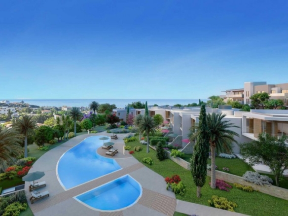 Located within a unique residential resort, just a short walk from the Paphos coastline and the blue waters of the Mediterranean Sea. These hilltop homes in Chloraka have a relaxing contemporary design with distinct Mediterranean features. All living areas have direct access to large verandas, terraces and gardens which surround the properties. All interior designs allow the sun and air to flow through.Luxury gated community that will boast large communal greens, two communal swimming pools, a clubhouse as well as a tennis court. In this special collection of exclusive homes, you will experience a mix of design and architecture with traditional features, comfort and construction into Mediterranean living. Mediterranean references to Cypriot stone villas, volumes, openings, large covered outdoor spaces, materials, stone, plaster, wood, tiled roofs, earthy colours, Mediterranean landscaped gardens.